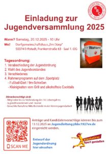 📩 Anträge und Kandidatenvorschläge können bis eine Woche vor dem Versammlungstermin an jugendleitung@bbc1927ev.de eingereicht werden.